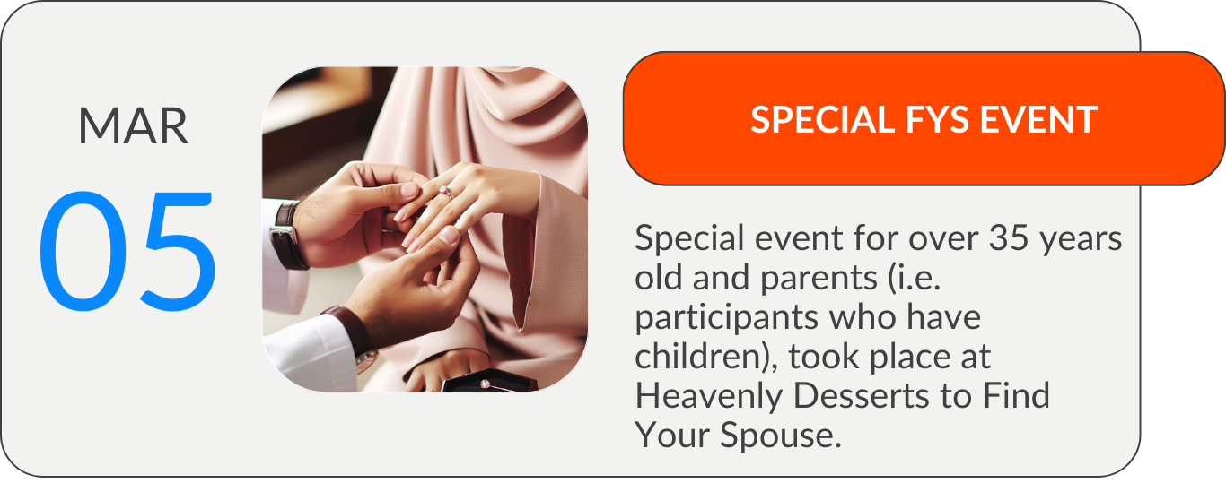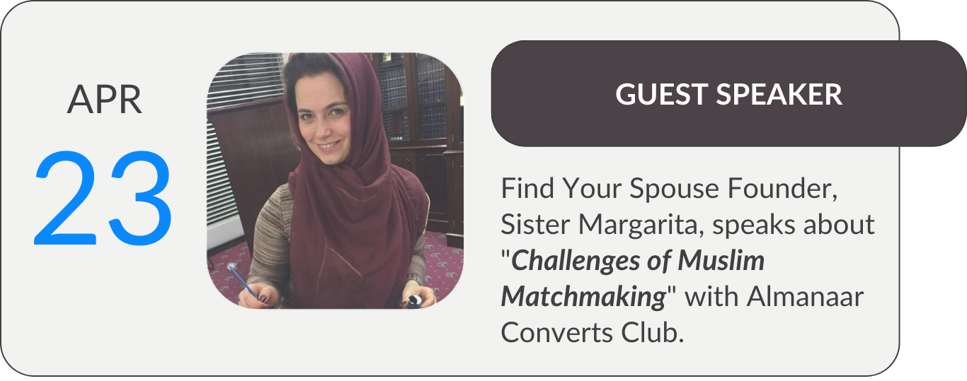 • "I attended the event in March and I found my spouse! We got our Nikkah done recently in August Alhumdullilah! May Allah swt reward you all for giving people the opportunity to find their spouses in a halal setting.