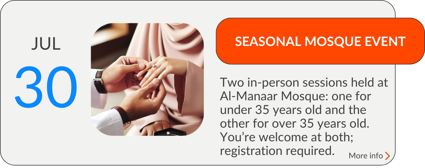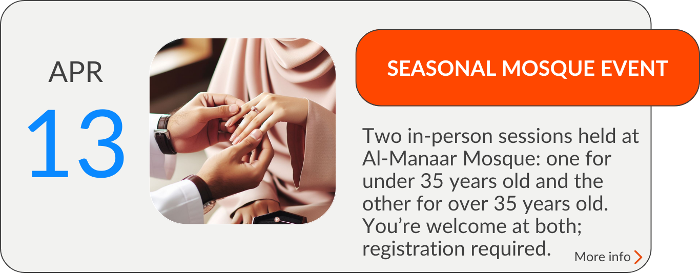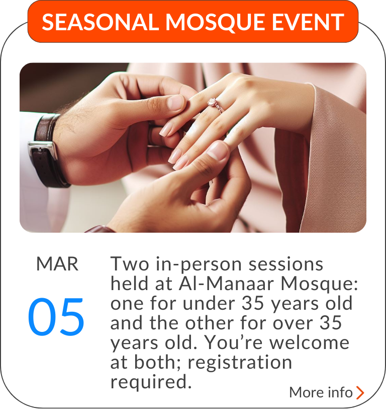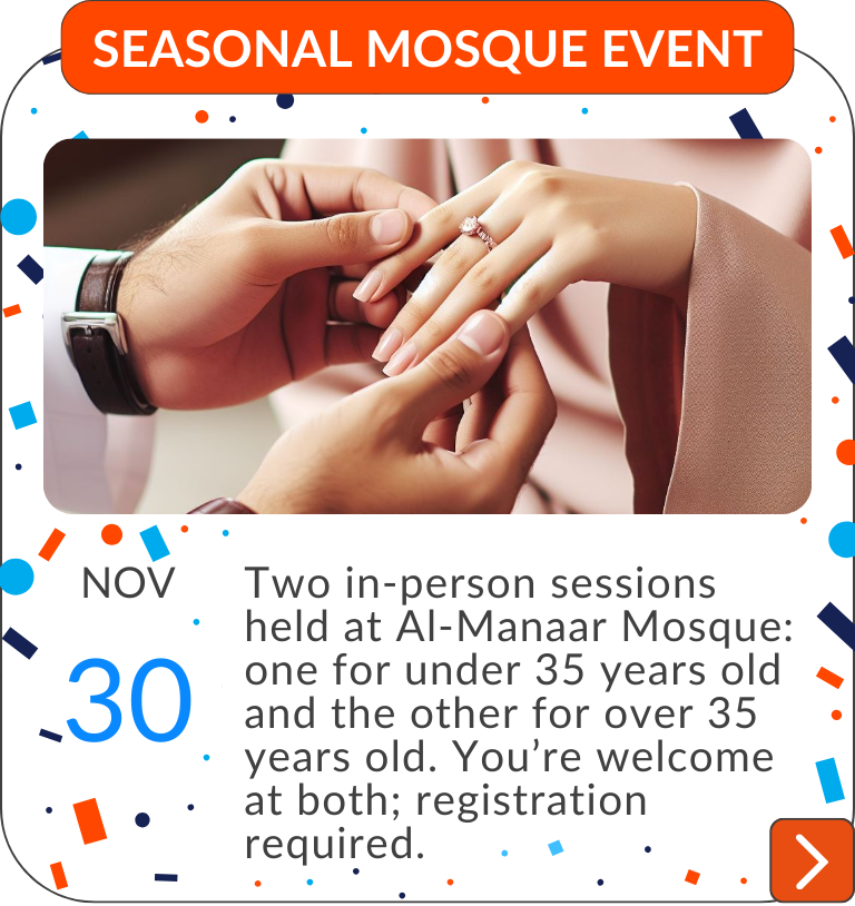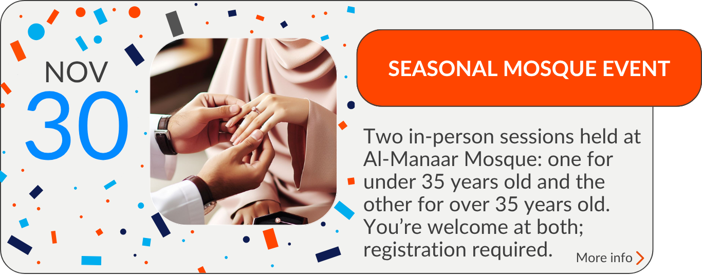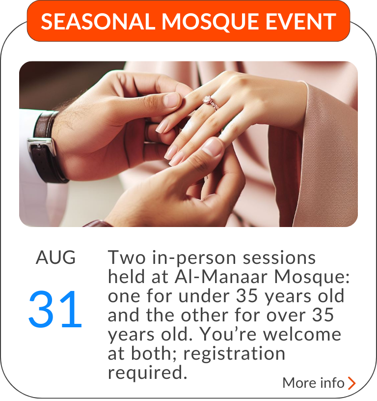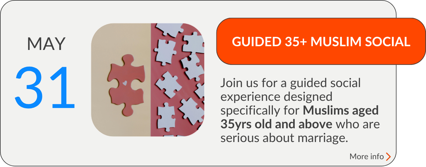 • "It is by far one of the best Muslim matrimonial speed dating event I’ve been to. It’s really good that you have different question’s which are relevant to marriage and practical for the participants. It's also value for money compared to other events which charge extortionate prices and provide no refreshments."